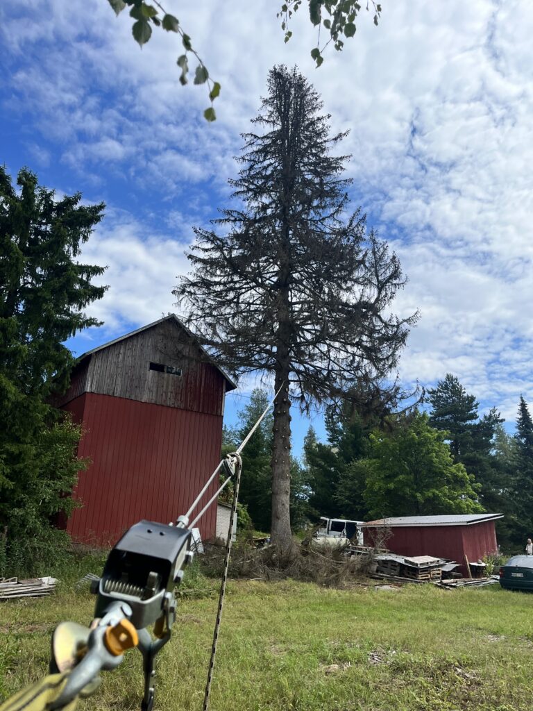 Pihapuiden kaato sisältää lähes aina paljon enemmän riskejä, kuin metsässä olevan puun kaato. Pihapuiden läheltä löytyy rakennuksia, sähkölinjoja, istutuksia, muita puita, terasseja, piha-aitoja, lipputankoja ynnä muuta… lista on pitkä. Pihapuun kaadossa on aina otettava ympäristö tarkasti huomioon ja puu ei saa kaatua väärään suuntaan. Pihapuut ovat tyypillisesti myös keskimääräistä suurempia ja niissä on monesti iän tai koon mukanaan tuomia vioittumia tai lahoa.